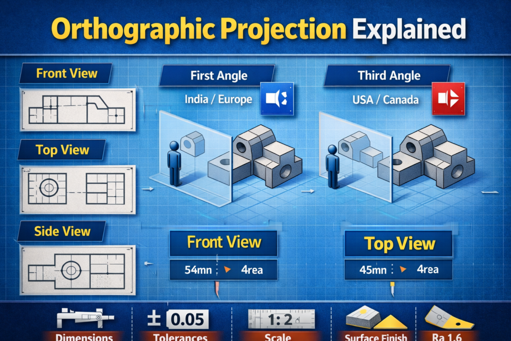 📌 एक अच्छी ऑर्थोग्राफिक ड्राइंग = सही मशीन पार्ट